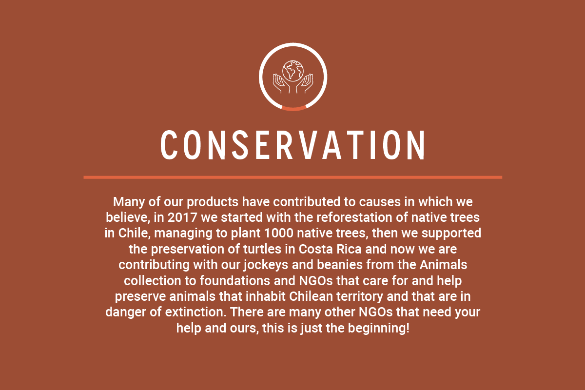 By buying a cap from our Extinction Animals collection you will be contributing to the preservation of animals in South America. You will be helping foundations that will receive your contribution.